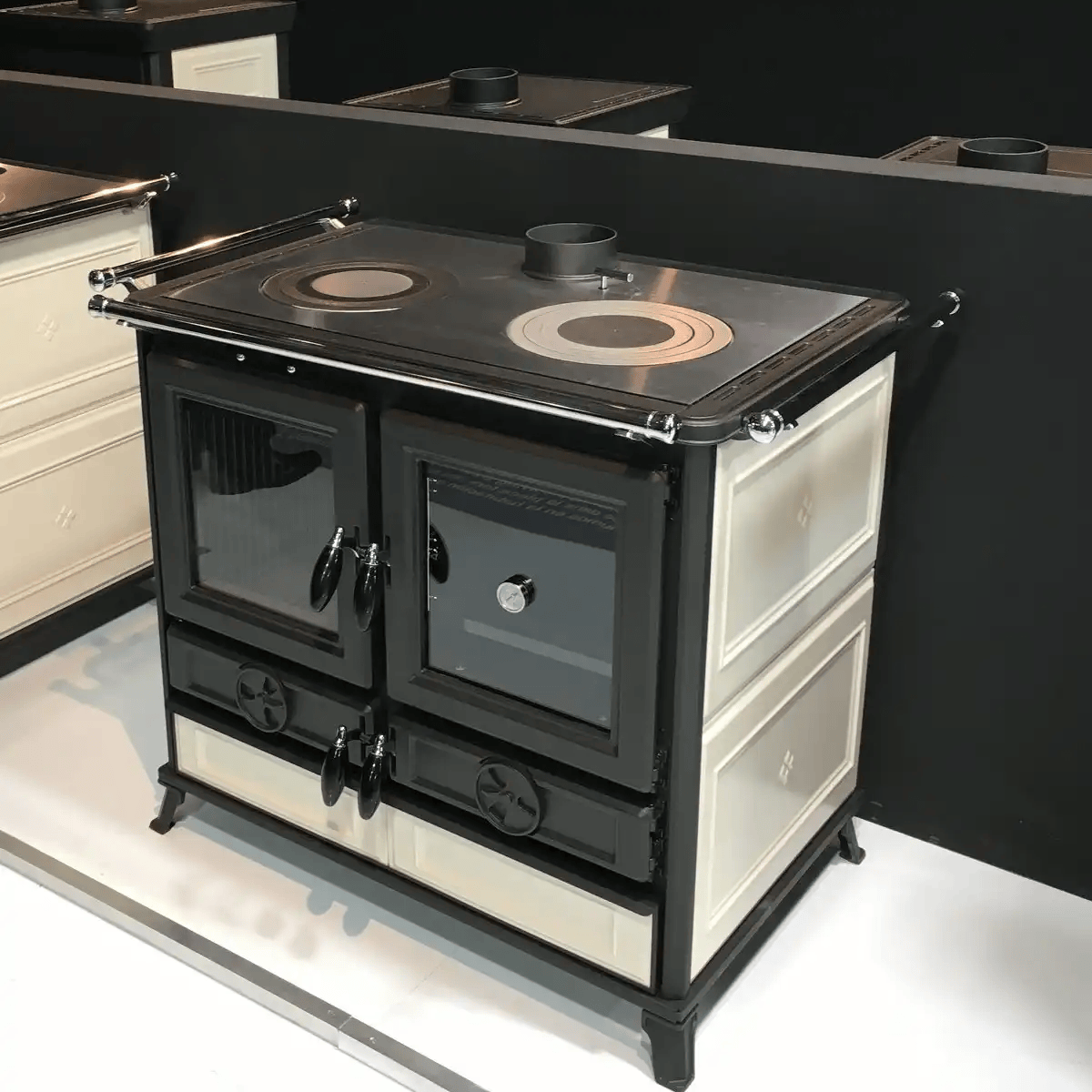Bakerovnen er emaljert på innsiden, og er utstyrt med steketermometer og stekeplate. I luken under ovnen er det også plass hvor maten kan holdes varm.